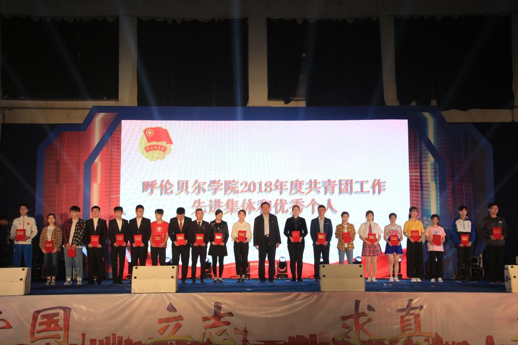 在第一篇章中对呼伦贝尔学院2018年度共青团工作先进集体和优秀个人进行了表彰,校党委书记韩猛对获奖单位及个人表达了祝贺并为获奖代表颁发证书。