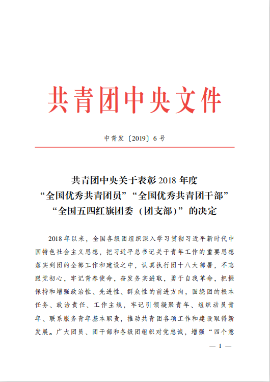 日前,共青团中央下发了中青发【2019】6号文件《共青团中央关于表彰2018年度“全国优秀共青团员”“全国优秀共青团干部”“全国五四红旗团委(团支部)”的决定》,永利yl23411集团官网数学与统计学院团总支荣获“全国五四红旗团委(团支部)”称号。此次表彰中全区受表彰的集体和个人共14个,其中高校只有一名个人,一个集体。