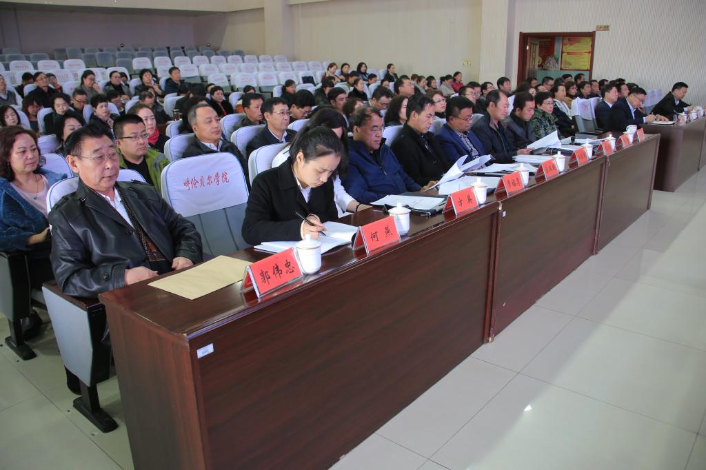 他讲到学校始终以习近平新时代中国特色社会主义思想为指引,深入学习贯彻党的十九大精神,坚持立德树人根本任务,认真落实全国全区高校思想政治工作会议和全国教育大会精神,牢固树立“四个意识”,全面从严治党,推进依法治校,加强内涵建设,实施转型发展。他提出接下来要不断加强自身建设,提高办学治校能力,以转型发展为契机,凝心聚力、深化改革、攻坚克难,努力解决存在的问题,使学校又好又快发展,办人民满意的大学。