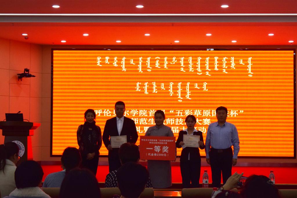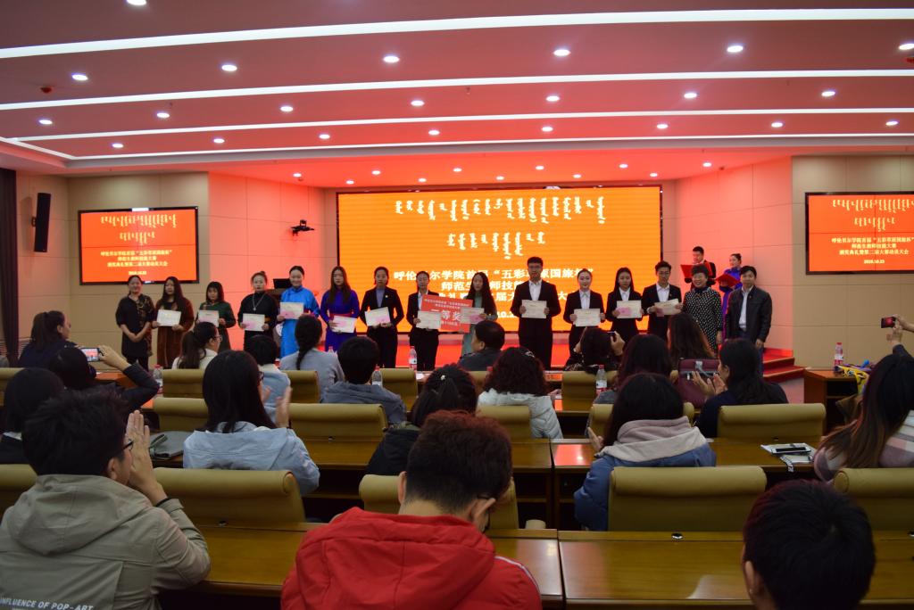 首先,由各位领导及来宾宣读了呼伦贝尔学院首届“五彩草原国旅杯”师范生教学技能大赛文科组、理科组和蒙授组的获奖同学名单并颁发获奖证书。