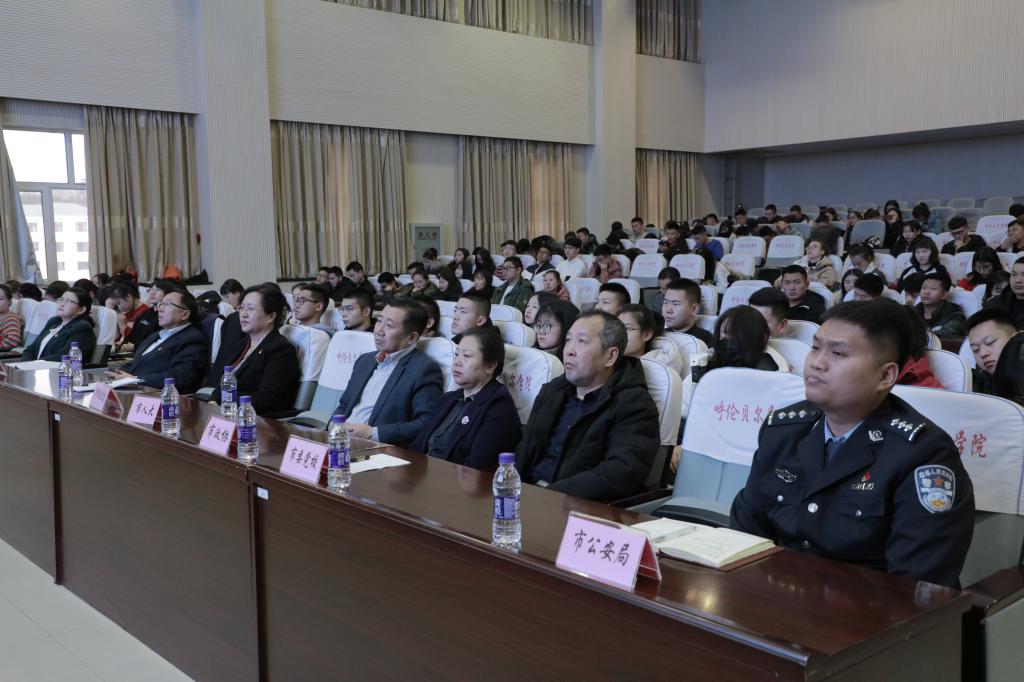 11月5日,由呼伦贝尔市法学会组织的“百名法学家百场报告会”呼伦贝尔市首场报告会在永利yl23411集团官网举行。内蒙古法学会常务理事,呼伦贝尔学院法学院院长马斌教授为学生做了《践行社会主义核心价值观加强大学生法治实践教育》的专题讲座.呼伦贝尔市人大、政协、中级法院、检察院、公安局、呼伦贝尔学院、党校各法学会副会长单位的领导参加报告会。报告会由法学会秘书长包玉花主持