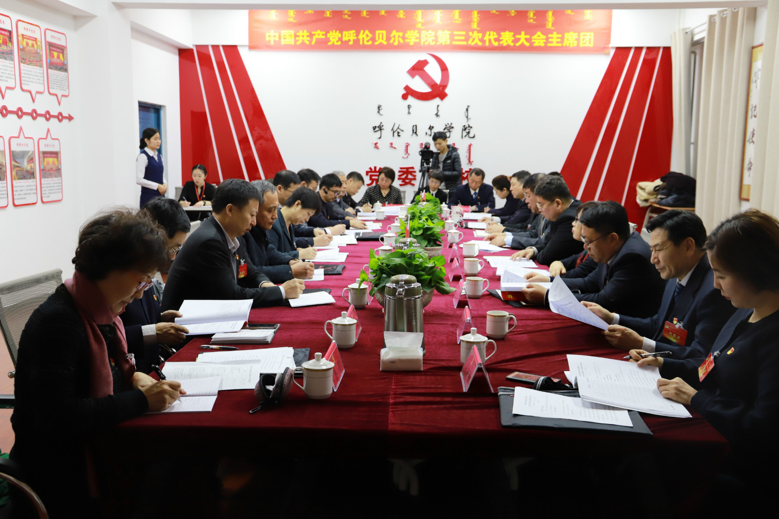预备会议上,党代表们集中观看了警示教育片《镜鉴》。预备会结束后,呼伦贝尔学院第三次党代会主席团在艺术楼501室举行第一次会议。明确大会主席团任务,通过大会执行主席分组名单、列席人员及特邀代表名单。主席团会议还通过了第三次党代会的日程安排。根据这一日程安排,大会将于1月15日上午开幕,1月16日上午闭幕。
