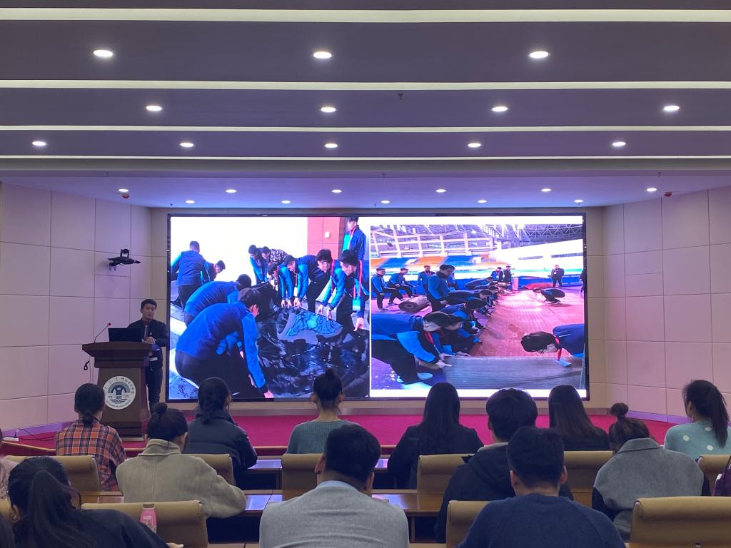 林波同学向大家分享了做为十四冬志愿者先后两次服务了短道速滑测试赛和速度滑冰资格赛的志愿服务经历,在服务赛会期间他两次都选择了最为辛苦的工作岗位,谈到选择岗位的原因的时候,他说自己作为一名大四的志愿者,在步入社会前能够参加如此大型的赛会志愿服务,他无比自豪。同时作为一名学生党员,一名呼院的学生党员,更应该发挥党员的模范带头作用,所以他毅然选择了场地器材组。服务期间任劳任怨,出色的完成了本组的工作。