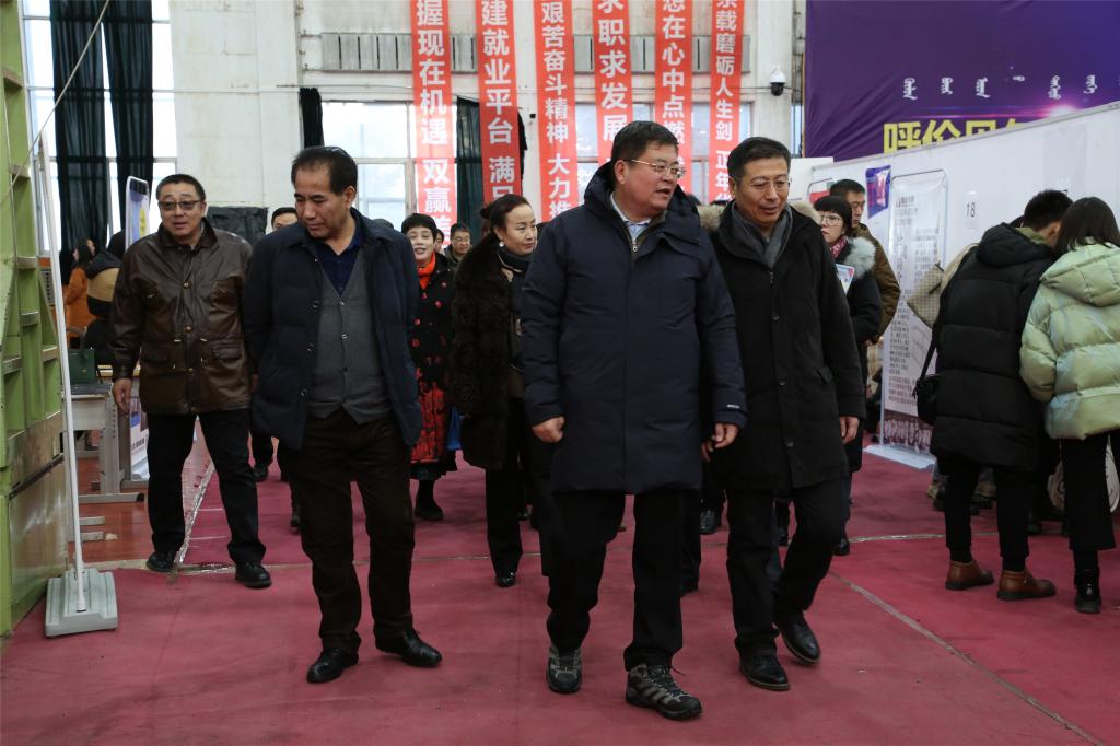 呼伦贝尔市人力资源和社会保障局副局长刘国军一行在呼伦贝尔学院校长王曙光,呼伦贝尔职业技术学院副校长张建华,扎兰屯职业学院院长于风雨、副院长张松,满洲里俄语职业学院招生就业处处长武华斌的陪同下,莅临洽谈会现场考察、调研和指导工作。
