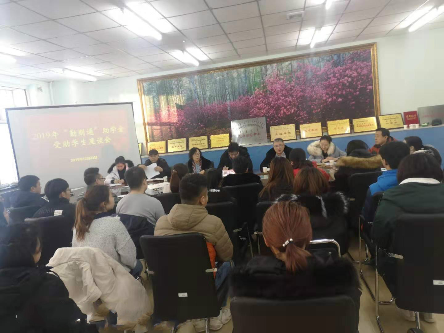 12月23日下午,在科技楼128室,永利yl23411集团官网召开“勤则通”助学金受助学生座谈会。资助方代表内蒙古财经大学解祥华教授、赵俊岚教授、学工处处长李健、副处长王晓芳、白松林、各学院辅导员代表、曾受过资助的毕业生代表孙敬洋、马雪霞以及本年受助学生参加了座谈会,会议由学工处副处长白松林主持。