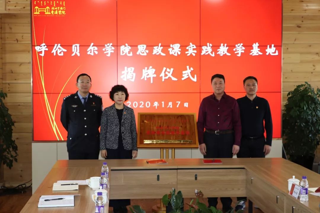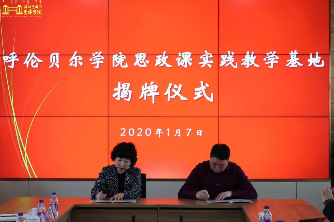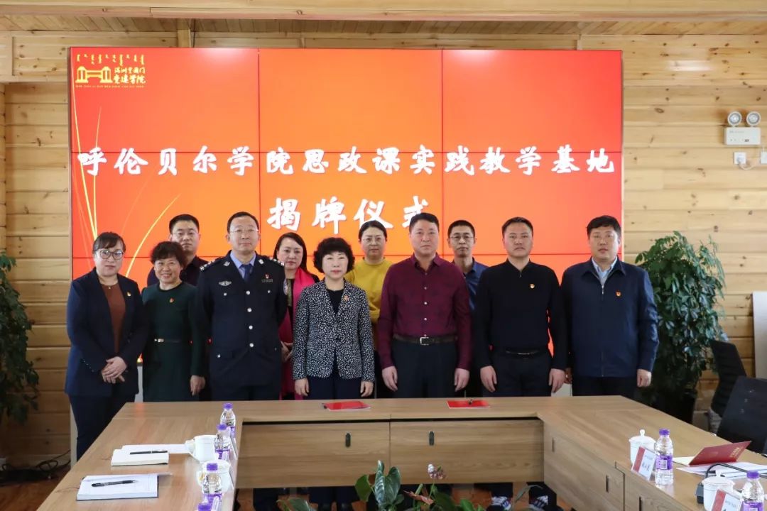 乌云达来副校长代表学校与满洲里国门党建学院共同签署共建思政课实践教学基地协议,并为呼伦贝尔学院思政课实践教学基地揭牌。