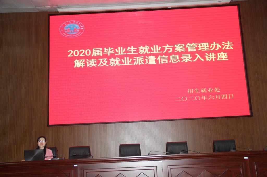 6月4日下午,招生就业处在图书馆四楼报告厅组织召开2020届毕业生就业方案管理办法解读及就业派遣信息录入讲座。各学院毕业班辅导员、2020毕业生代表及招生就业处全体人员近260人参加学习。