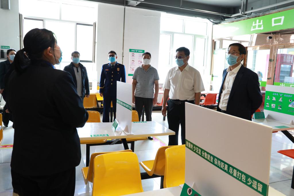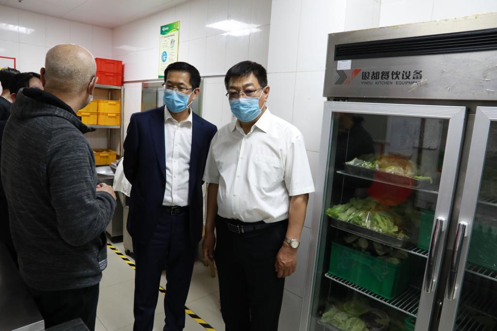 吕贵和副市长一行来到餐饮中心、学生宿舍、教室等重点区域,实地查看就餐卫生环境、餐厅就餐路线及流程、宿舍卫生条件等各项防疫措施,详细了解学校防疫防控、开学复课后的具体教学安排、防控物资储备等情况,仔细询问了学生返校报道流程、学校重点区域消杀、教室卫生管理等操作以及报到期间和返校后出现学生体温异常情况的应急处置过程。吕贵和副市长对永利yl23411集团官网开学复课各项工作给予充分肯定。