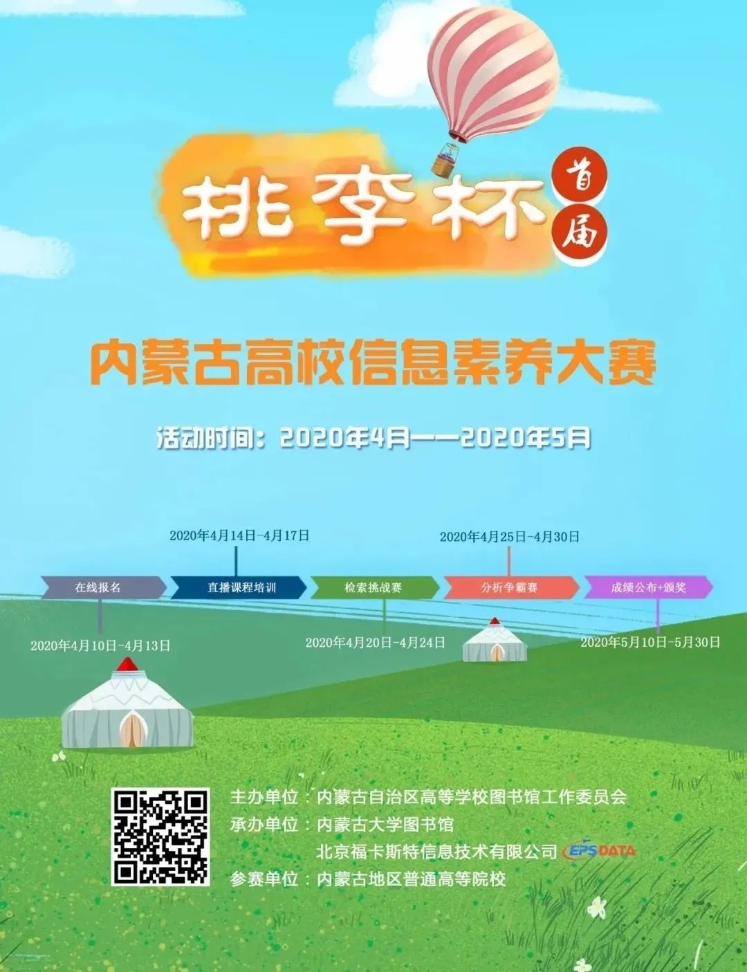 2020年4月-6月举办的首届“桃李杯”内蒙古高校信息素养大赛,由内蒙古自治区高等学校图书馆工作委员会主办,作为内蒙古地区信息素养方面的高水平赛事,自4月10日启动以来,20所高校图书馆组织6350余名学生报名参赛,全赛程历时15天,包括4天的课程学习、5天的检索挑战赛以及6天的分析争霸赛。
