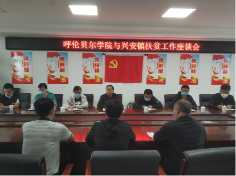 调研组与兴安镇党委政府主要领导进行座谈,详细了解了脱贫攻坚总体情况、主导产业发展、呼伦贝尔学院扶贫干部工作等情况,并围绕高质量稳定脱贫,校地党建融合发展,暑期“三下乡”等工作进行了沟通交流。