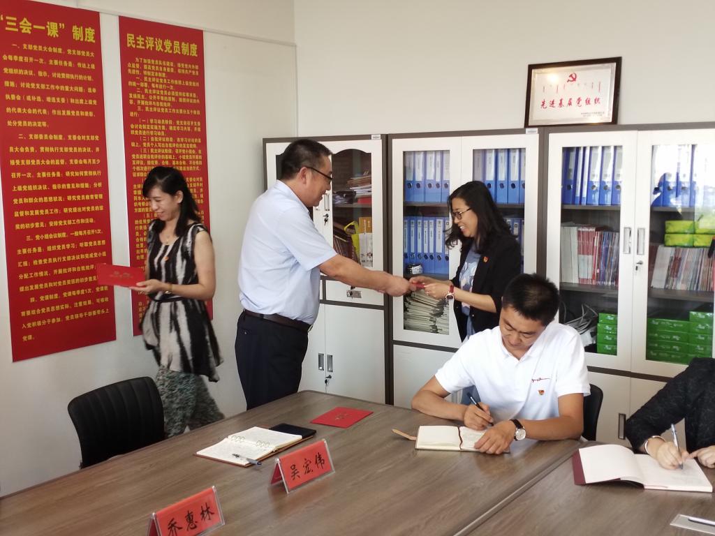 首先,由宣传委员赵丽哲同志带领大家重温中国共产党党史,回顾了党的历次代表大会概况和精髓。随后,在党支部书记吴宏伟的带领下,全体党员面向党旗,重温入党誓词,并为上半年入党的七位同志赠送政治生日贺卡、扶正党徽、送上政治生日祝福。几位党员畅谈了政治生日感言,分享了入党故事和心路历程,纷纷表示收到这份意义不凡的“礼物”激动不已,今后在工作中,会时刻牢记自己党员的身份,坚守入党初心,践行入党誓言,把对党的忠诚转化到工作中。