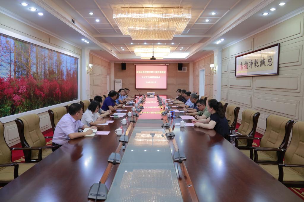 7月27日上午,内蒙古党校第37期中青班“完善人才支持政策、打造高素质人才队伍,推动自治区高等教育高质量发展课题调研组”人才工作调研座谈会在永利yl23411集团官网图书馆三楼会议室举行。内蒙古党校法学教研部教授毛原,内蒙古自治区党委高校工委组织部副部长、教育厅人事处副处长安永明一行9人和永利yl23411集团官网党委委员、副校长孟祥宏,人事处(教师发展中心)处长李跃武,科学技术处处长田振江,学科建设办公室主任敖特根,组织部副部长赵小花,教务处副处长李伟艳出席了会议。会议由孟祥宏副校长主持。