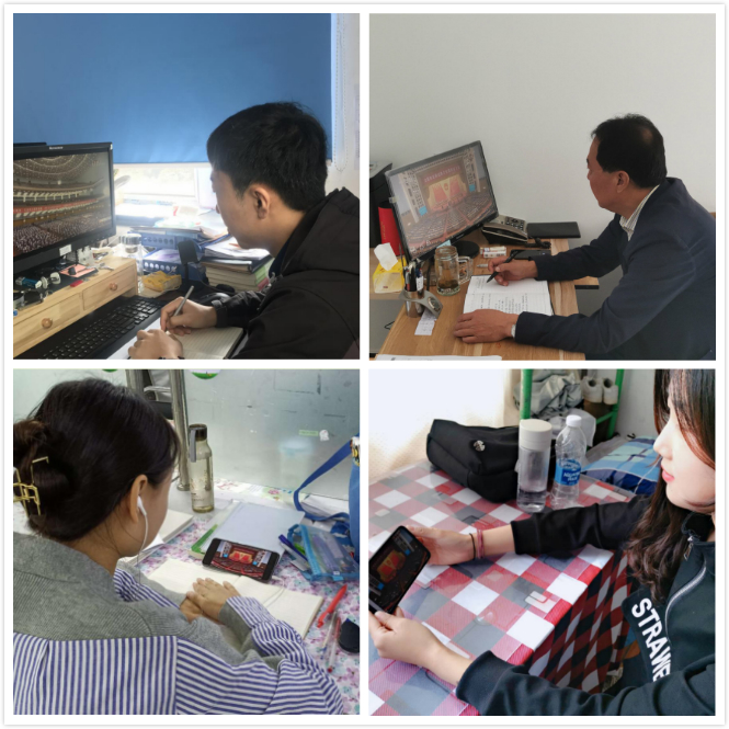 学校部分师生通过电脑、手机等形式在办公室、宿舍观看直播