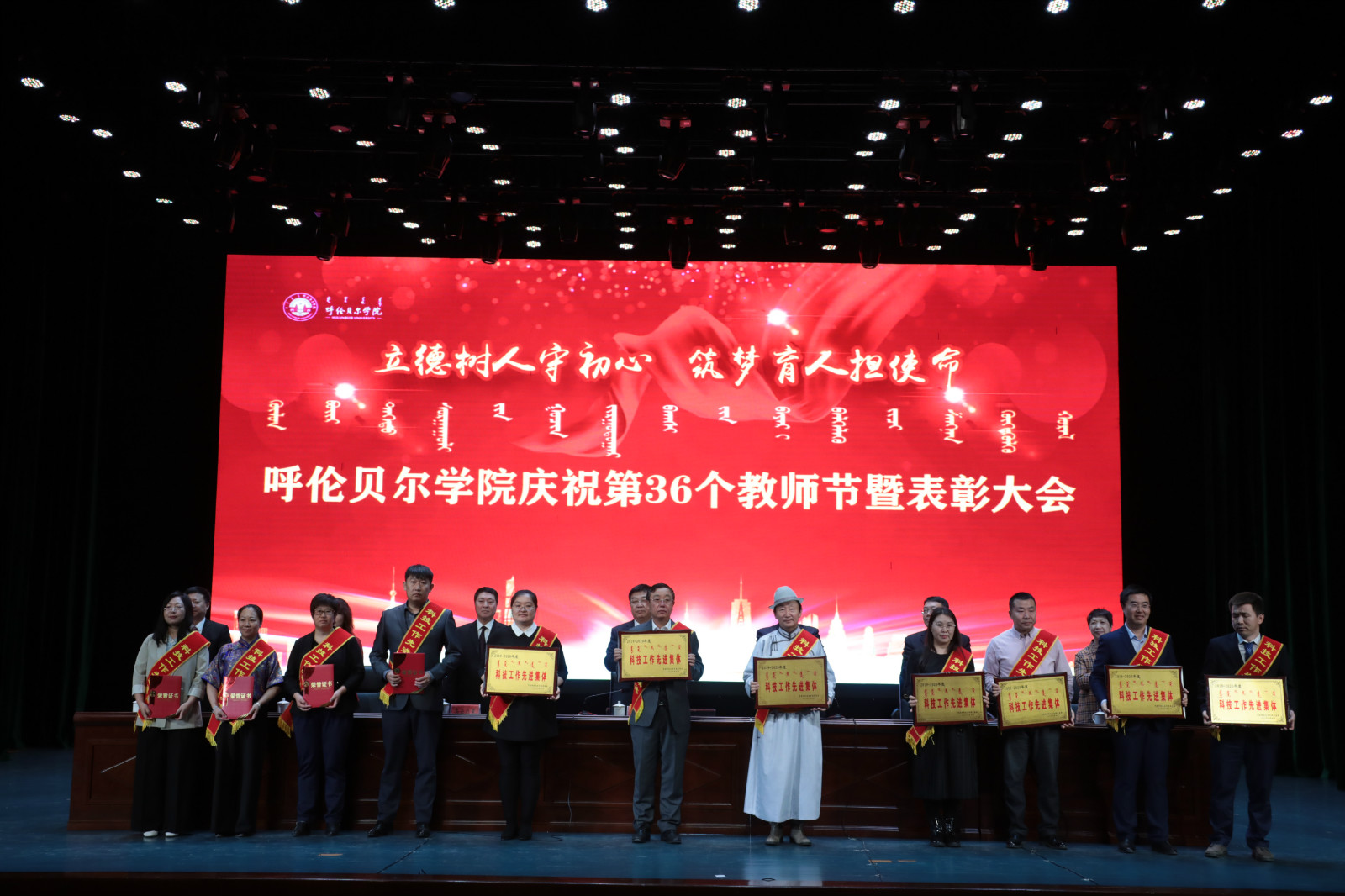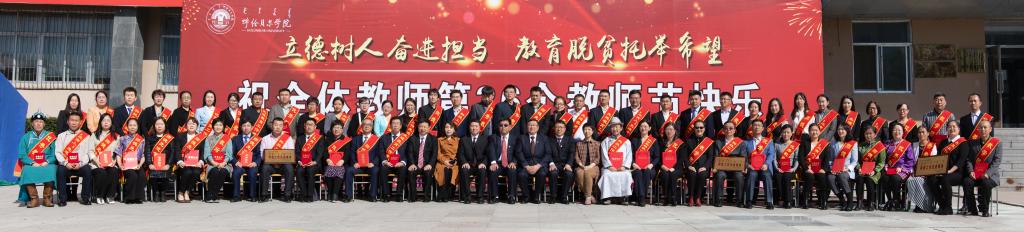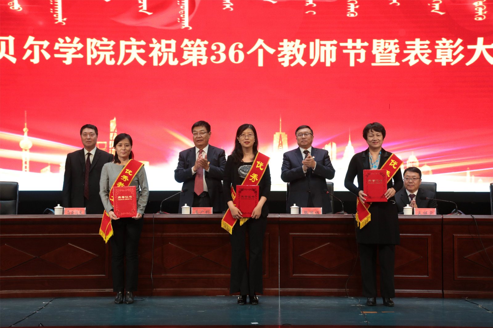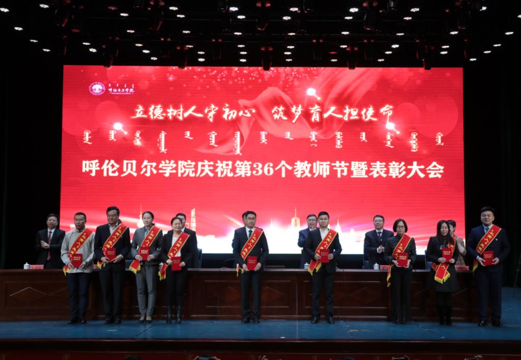 在热烈的掌声中,受表彰的集体和个人代表有秩序地走上主席台领奖,幸福洋溢在每位获奖代表的笑靥上。外国语学院董瑞秋同学作为学生代表向全体教师送上节日的祝福。2020年自治区高校优秀思想政治理论课教师何耀云教授和2019年自治区高校教学名师斯仁巴图教授与在场全体师生分享了作为一名教师的荣耀与责任。