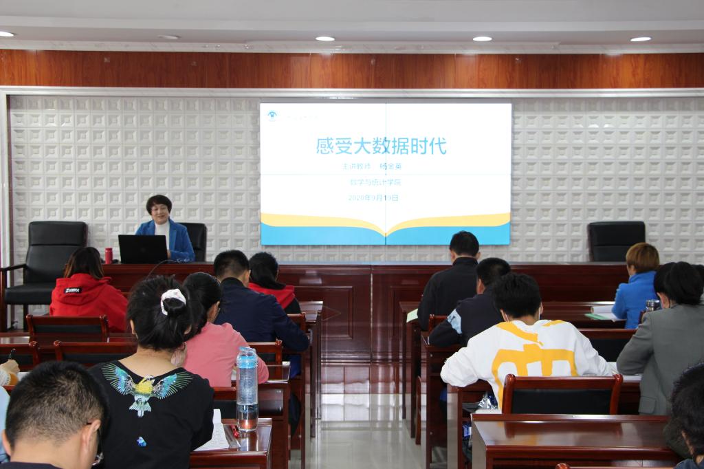 会后,数学与统计学院杨金英教授做了《感受大数据时代》的讲座,永利yl23411集团官网2020年“送教到校”为全市培训3500多名高中教师的工作正式开始。