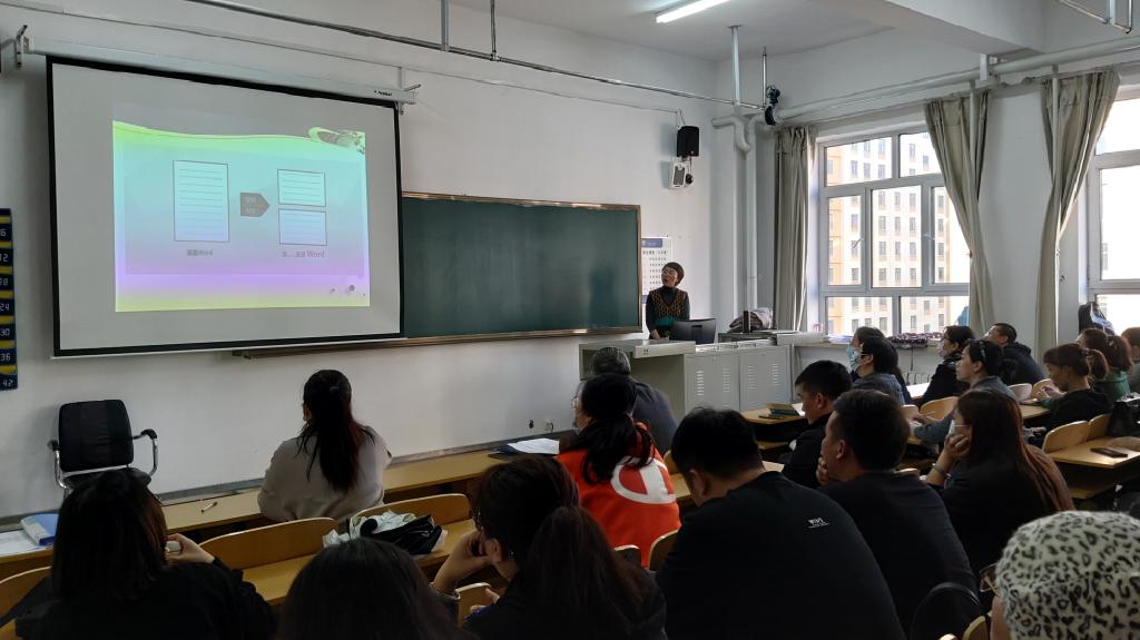 会上,郭老师为新教师讲授了如何进行课件的设计与制作,对PPT中的可视化工具如SmartArt、美化大师等的常用功能以及使用中的常见问题进行现场演示,强调了在制作PPT时要做到“内容为王、有故事、有逻辑”;此外,郭老师结合具体案例从设计理念、操作步骤、设计原则三个方面介绍了常用的使用技巧,指导新教师们在制作课件时真正走出“教材搬家”的误区,进而设计出适合课堂教学的、实用美观的课件。