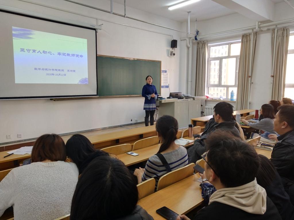 10月21日下午,在崇文楼B422室,人事处(教师发展中心)组织开展永利yl23411集团官网2020年度新教师入职系列培训,本次培训邀请到永利yl23411集团官网数学与统计学院宋旭霞教授为大家做了主题为“坚守育人初心、牢记教师使命”的讲座。