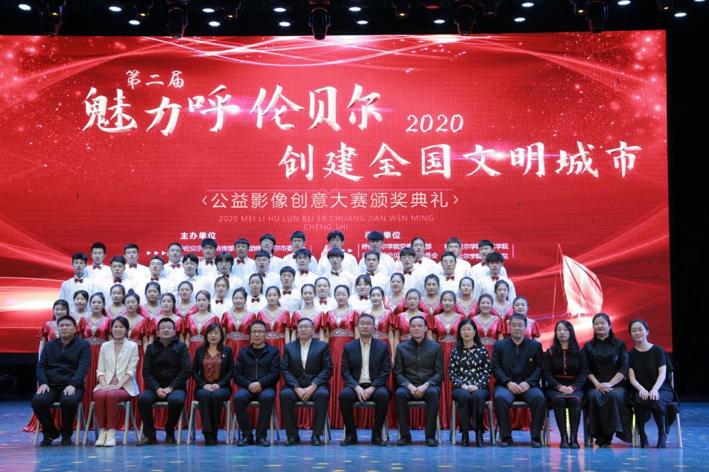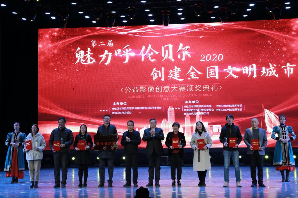 10月16日晚,由呼伦贝尔市委宣传部、呼伦贝尔市文明办和共青团呼伦贝尔市委员会主办,呼伦贝尔学院党委宣传部、共青团呼伦贝尔学院委员会、呼伦贝尔学院传媒学院、美术学院和维拉文化传媒有限公司共同承办的第二届“魅力呼伦贝尔.创建全国文明城市”公益影像创意大赛颁奖典礼在音乐厅举办。呼伦贝尔市委宣传部副部长张辉天、呼伦贝尔学院党委副书记张国栋等领导,社会各公益组织代表及呼伦贝尔学院师生代表们参加了此次颁奖典礼。