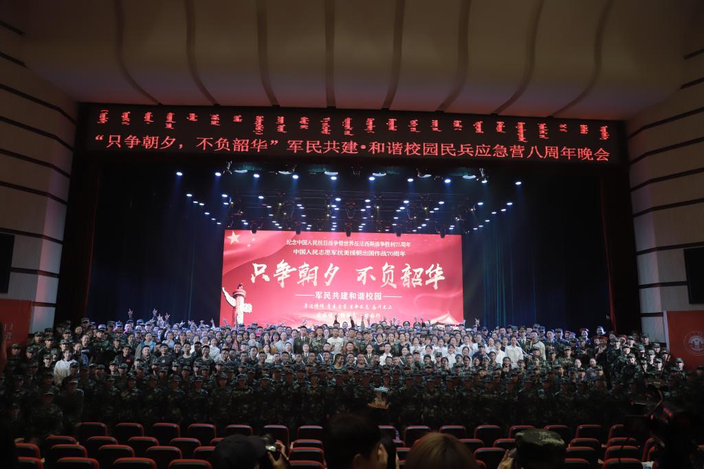 为纪念中国人民抗日战争暨世界反法西斯战争胜利75周年、中国人民志愿军抗美援朝出国作战70周年,加强大学生国防教育,增强大学生的国防意识,10月27日晚,由海拉尔区人民武装部与呼伦贝尔学院武装部联合举办“只争朝夕 不负韶华”军民共建和谐校园主题文艺晚会在演播厅成功举办。参加本次晚会的嘉宾有海拉尔区人民武装部部长乔海滨、政工科科长雷中涛,应急管理部呼伦贝尔市森林消防支队海拉尔区森林消防二中队队长丛德龙,永利yl23411集团官网学生生工作处长、人民武装部部长李健,校园安全管理处处长毛永强,以及来自各学院的领导、老师和同学们在现场观看了晚会,同时有近5万人在场外观看现场直播。