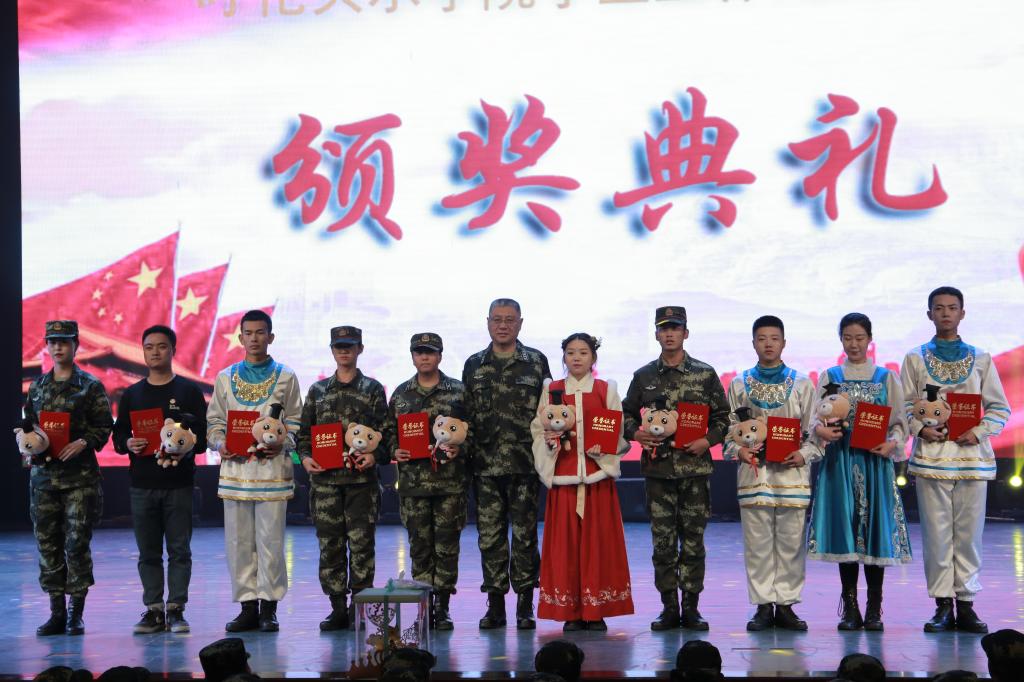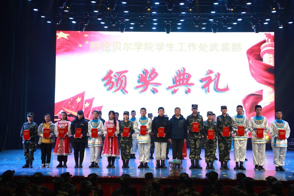 晚会分为两部分,首先进行的是颁奖典礼。对2019年全区国旗护卫队比赛获得先进个人荣誉称号的学生及民兵应急营勤务成绩突出战士、2020年新生军训被评为“最美教官”的同学分别进行表彰,海拉尔区武装部部长乔海滨、学生工作处处长李健、校园安全管理处处长毛永强分别为获表彰的同学颁发了荣誉证书,并与获奖战士们一一握手表示祝贺!