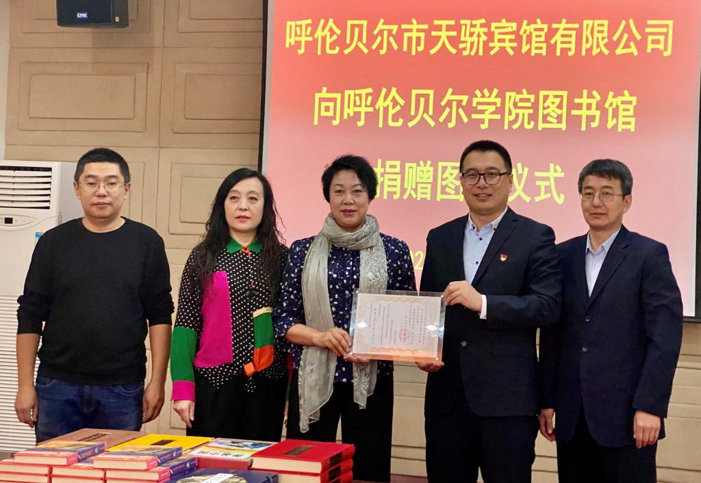 10月30日,呼伦贝尔天骄宾馆有限公司向永利yl23411集团官网图书馆捐赠图书仪式在图书馆学术报告厅举行。天骄宾馆党委书记、总经理郭晓冬同志委托天骄宾馆党委委员、副总经理、工会主席王志超同志代表公司捐赠图书625册。