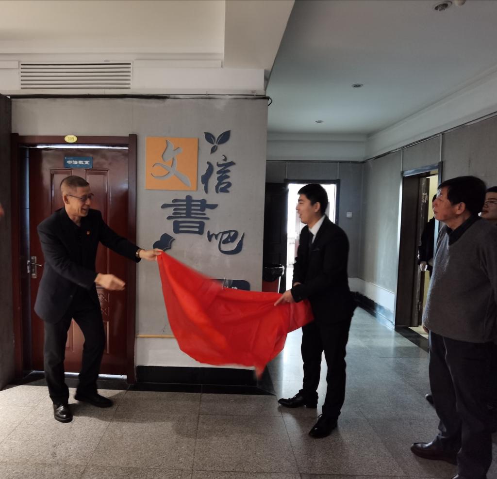 仪式现场,教育学院院长王毅与启航教育负责人贾英强共同为“文信书吧”揭牌,随后,领导、老师与广大书友共同参观书吧。