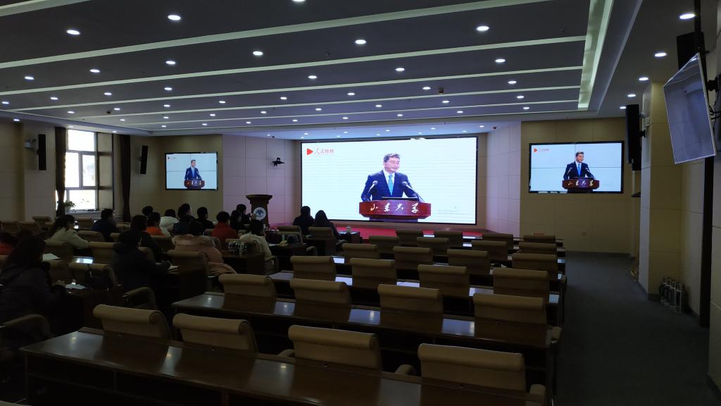 11月3日,教育部新文科建设工作会议在山东大学召开。按照要求,永利yl23411集团官网广大教师采取集中和分散相结合的方式收看了上午的会议直播。校党委委员、副校长孟祥宏,发展规划处、教务处以及各文科学院主要负责人、系主任、骨干教师共计50多人在崇文楼A201会议室集中收看会议直播。同时,学校还要求其他相关教师在手机端自行收看。