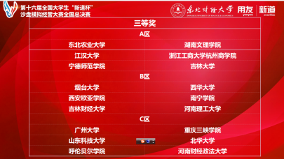 11月3-8日,第十六届全国大学生“新道杯”沙盘模拟经营大赛全国总决赛顺利进行。本次大赛由中国商业联合会主办,东北财经大学承办,新道科技股份有限公司技术支持。此次比赛全程采用“约创云”模拟经营平台以网络形式进行。本次大赛由经济管理学院王淑华老师带队,选派省赛获奖的5名不同专业学生马子印、曲明慧、李浩栋、朱佳帅、吕禄乾组成呼伦贝尔学院代表团队,进过激烈角逐,最终在来自全国各大高校120支参赛代表队中脱颖而出,荣获得全国三等奖的好成绩。