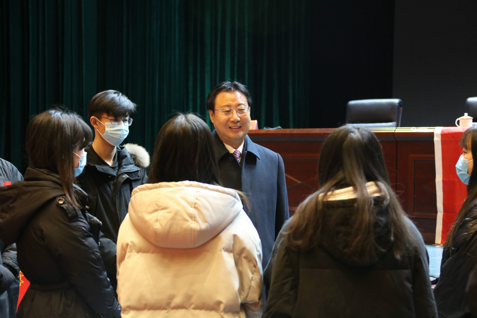 孟青龙书记指出,党的十九届五中全会通过的“十四五”规划建议,是习近平总书记亲自领导下、汇聚全党全国智慧编制而成的行动纲领和政治宣言,擘画了中国面向未来的宏伟蓝图。他勉励师生要牢记初心使命,从国家发展的大格局研究问题,把个人理想追求融入党和国家事业之中;要深入学习党的十九届五中全会精神,深入领会精神要义,找准奋斗着力点,明确目标与方向;要学好本领,潜心钻研,掌握观察和认识世界的正确方法,努力成为国家的栋梁之材。