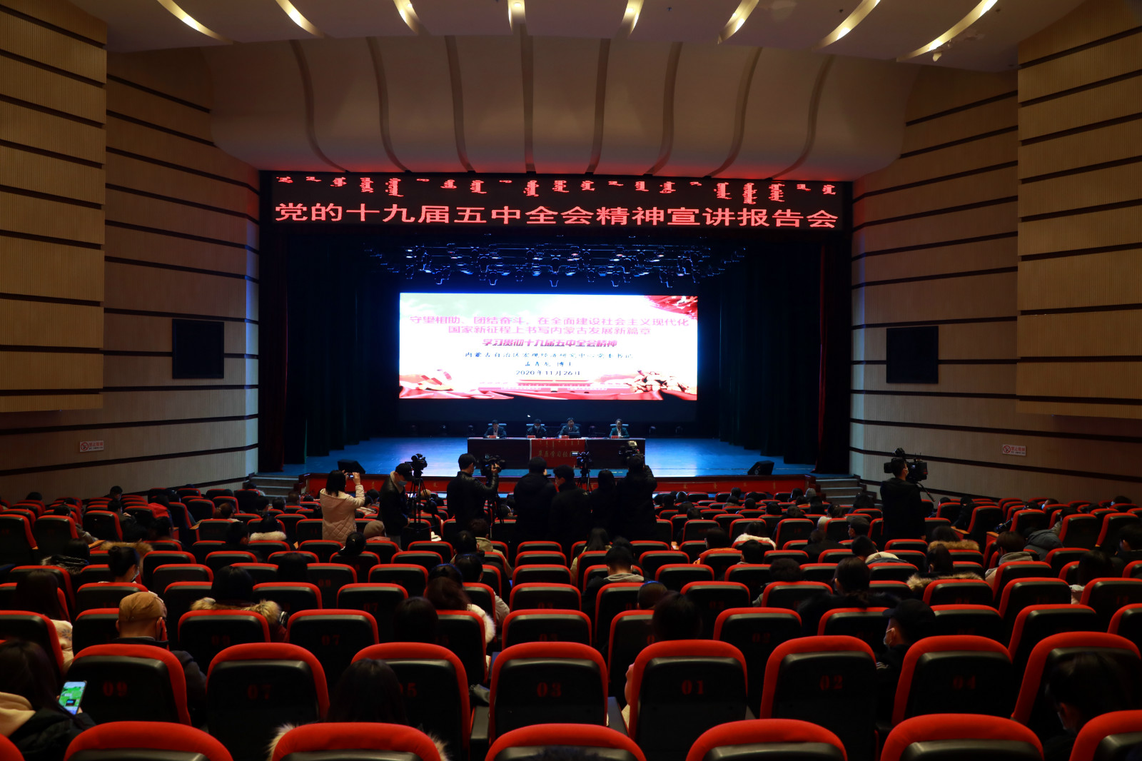 11月26日上午,内蒙古自治区“草原学习轻骑兵”宣讲小分队来到永利yl23411集团官网宣讲党的十九届五中全会精神,内蒙古自治区宏观经济研究中心党委书记孟青龙作宣讲报告。自治区宏观经济研究中心战略研究处副处长杜勇锋、呼伦贝尔市委讲师团团长王茹君、讲师团干部倪秀荣,呼伦贝尔学院党委委员、副校长乌云达来,党委委员、宣传部长刘秀兰,部分党支部书记、团学办主任、辅导员、离退休教师及学生代表等二百余人聆听了报告会。报告会由乌云达来副校长主持。