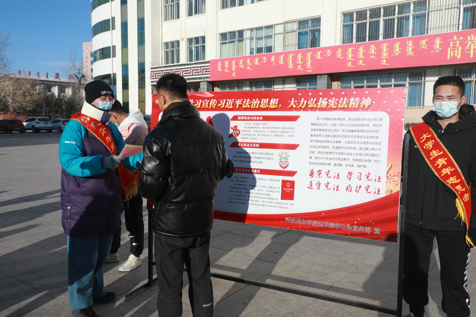活动当天,法学院派学生参加了呼伦贝尔市司法局呼伦贝尔市非诉纠纷调处中心与永利yl23411集团官网联合开展的宪法宣传活动,引导市民学法懂法守法用法;开展了线上宪法进校园、宪法进企业专题讲座;进班级、进宿舍、进办公室、进图书馆、进食堂等发放宣传单;通过“铸梦法苑”微信公众号开展线上宪法知识有奖竞答活动。