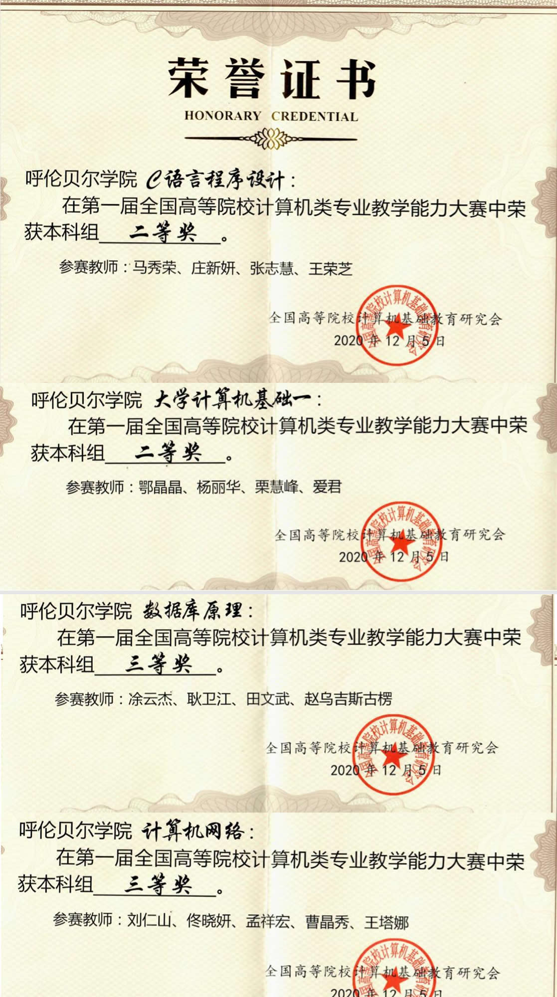 12月5至6日,由全国高等院校计算机基础教育研究会主办的第一届全国高等院校计算机类专业教学能力大赛决赛在海南省海口举行。大赛分为现场说课、评审答辩两个环节,旨在全方位、多角度、深层次考察参赛教师的课堂组织能力、分析判断能力和课程设计能力。永利yl23411集团官网计算机学院在这次大赛决赛中喜获丰收,入围决赛的四个课程团队分别获得两个二等奖,两个三等奖。其中,获得大赛二等奖的是马秀荣老师的《C语言程序设计》课程团队和鄂晶晶老师的《大学计算机基础一》课程教学团队;获得大赛三等奖的是凃云杰老师的《数据库原理》课程团队和佟晓妍老师的《计算机网络》课程教学团队。
