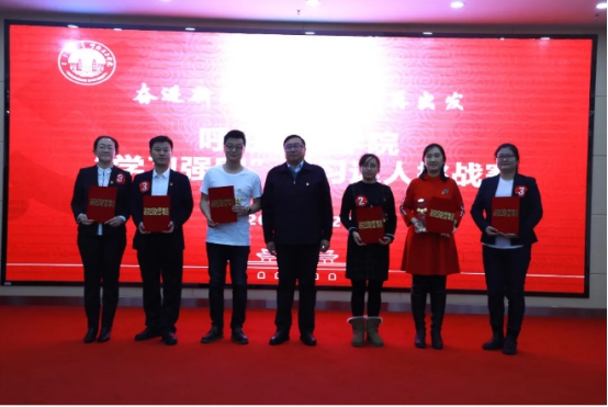 在颁奖环节,学校党委副书记张国栋通报了永利yl23411集团官网在“学习强国”内蒙古学习平台表彰活动中的获奖情况,宣读了永利yl23411集团官网2020年“学习强国”学习平台先进组织和先进个人的表彰决定及获奖名单,并为先进学习组织代表颁发了荣誉证书和读书卡。与会领导为获得“学习强国”学习平台先进学习个人的14名先进代表颁发了荣誉证书。同时也为本次比赛获奖集体和个人颁发了奖杯和证书。