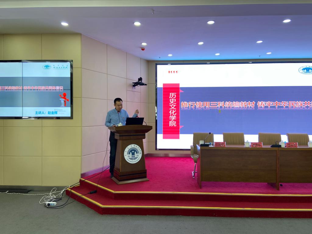 会后,由永利yl23411集团官网历史文化学院副院长赵金辉副教授对本次参加支教的学生做了铸牢中华民族共同体意识的主题培训。通过此次培训,支教学生更深刻地认识到三科统编教材是新时代落实立德树人根本任务,引导学生树立正确的世界观、人生观、价值观的核心教材,推行使用国家统编教材,有利于让民族地区各民族群众享受更加公平、更加有质量的教育,具有重大战略意义和深远现实意义。