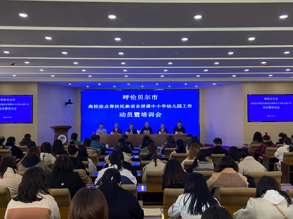 3月13日上午,呼伦贝尔市高等院校挂点帮扶民族语言授课中小学幼儿园工作动员暨培训会在永利yl23411集团官网举行。