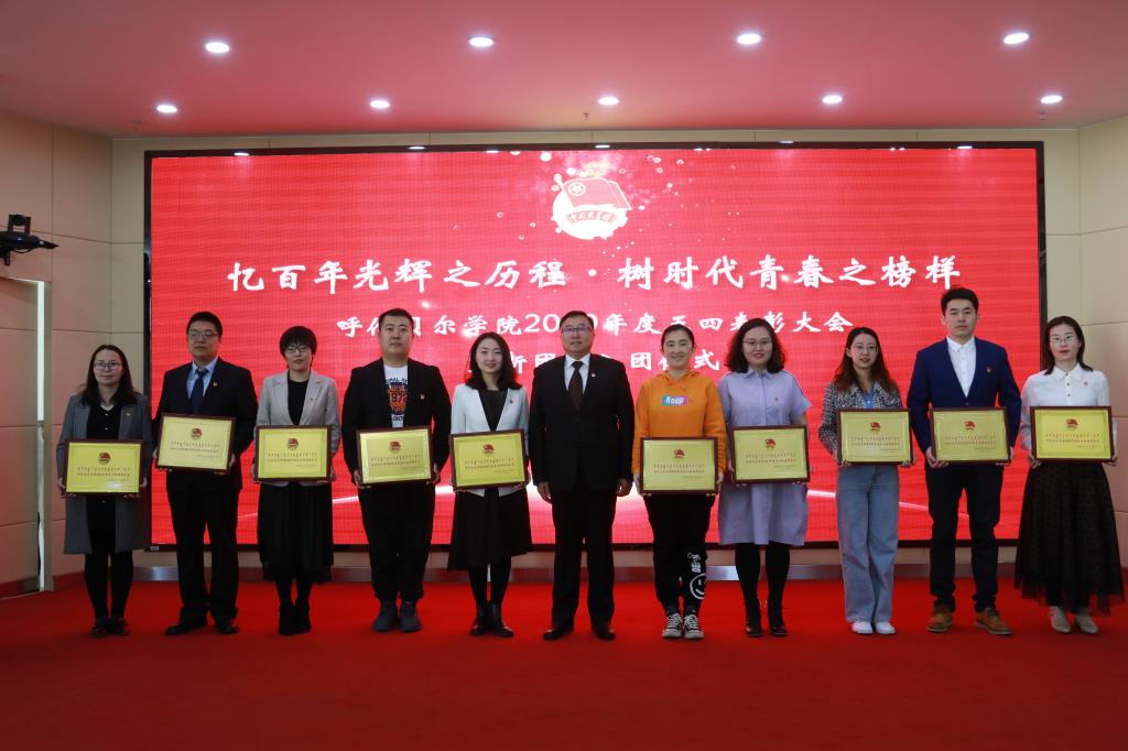 会议第二环节进行五四表彰大会。首先由团委书记郝新君宣读《呼伦贝尔学院2020年度五四表彰决定》《呼伦贝尔学院2020年度大学生“自强之星”表彰决定》,在欢快的进行曲中获奖代表上台领奖。外国语学院团总支书记王巍、经济管理学院学生赵书毓代表获奖集体和个人发言。