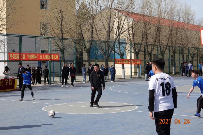 团委书记郝新君致开幕词,并为大赛开球。他希望在比赛中21个学院的运动员发扬“强健体魄,追逐梦想”的呼伦贝尔学院体育文化精神,赛出友谊、赛出风格、赛出水平,为校园文化增加色彩,也呼吁所有同学在大课间放下手机、走出宿舍、走向操场,在蓝天下积极参加体育运动,为以后的人生打下坚实的身体基础。比赛期间,郝新君书记和历史文化学院领导深入观众,认真交流,听取同学们对学校、学院发展的意见与建议,并一一记录,为“我为群众办事”搜集了意见。