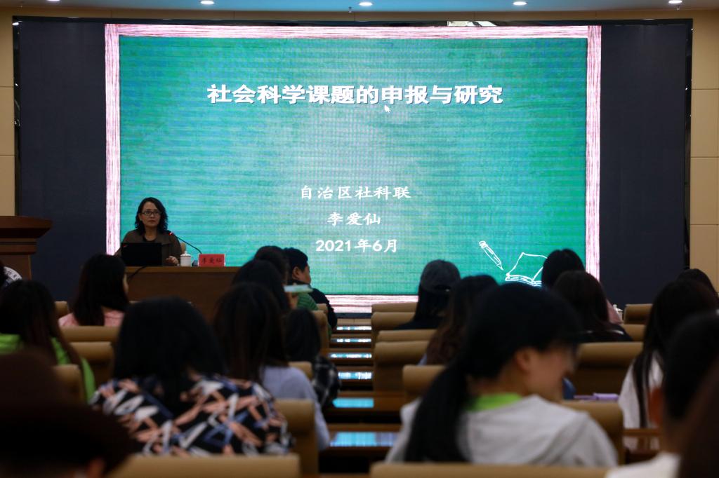 朱晓俊副主席、李爱仙部长在崇文楼A201为永利yl23411集团官网师生代表做《面向现代化的“十四五发展战略”》和《社会科学课题的申报和研究》专题讲座。