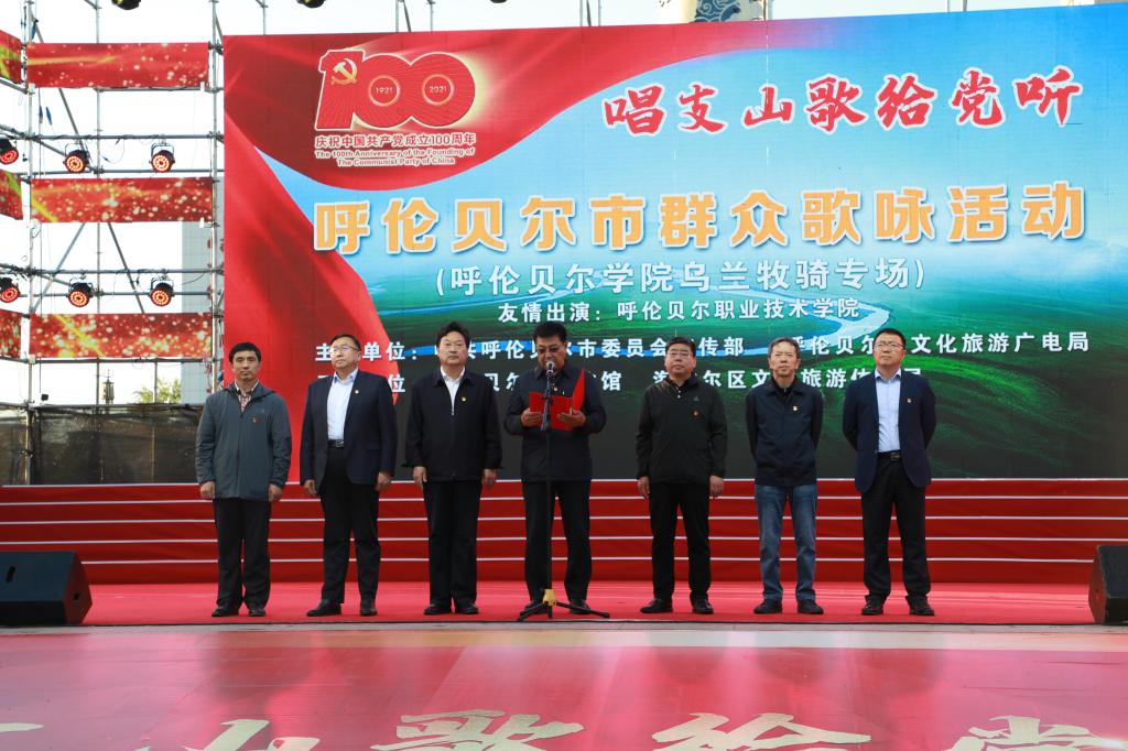6月10日晚上,永利yl23411集团官网和呼伦贝尔职业技术学院在成吉思汗广场联合开展主题党日活动,为海拉尔区举办“唱支山歌给党听”文化下乡专场文艺演出。两校领导班子成员及相关职能部门党员代表参加演出启动仪式。
