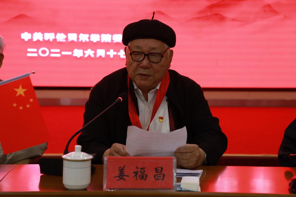座谈会上,王广利书记代表学校党委向获颁纪念章的老党员们表示崇高的敬意并发表讲话,他指出,老党员是呼伦贝尔学院发展历史和改革历程的见证者、实践者和推动者,学校建设发展取得的每一项成绩,都凝聚着他们的汗水和智慧,希望老党员老干部继续弘扬共产党人的优良品质,离岗不离党、退休不褪色,为推进学校高质量发展献计献策、发光发热。