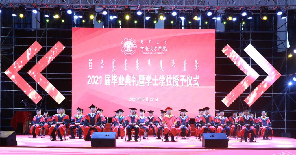 6月23日上午,学校在体育馆隆重举办2021届毕业典礼暨学士学位授予仪式。学校党委书记王广利,党委副书记、校长李文阁,党委副书记张国栋,党委委员、副校长孟祥宏,党委委员、纪委书记岳勇,党委委员、副校长敖特根出席典礼仪式。学校副处级以上干部、二级学院教科办主任、团学办主任、综合办主任、教师代表、在校生代表等1800余人参加了典礼。典礼由党委委员、副校长孟祥宏主持。
