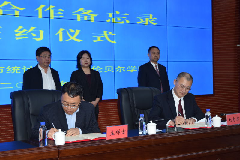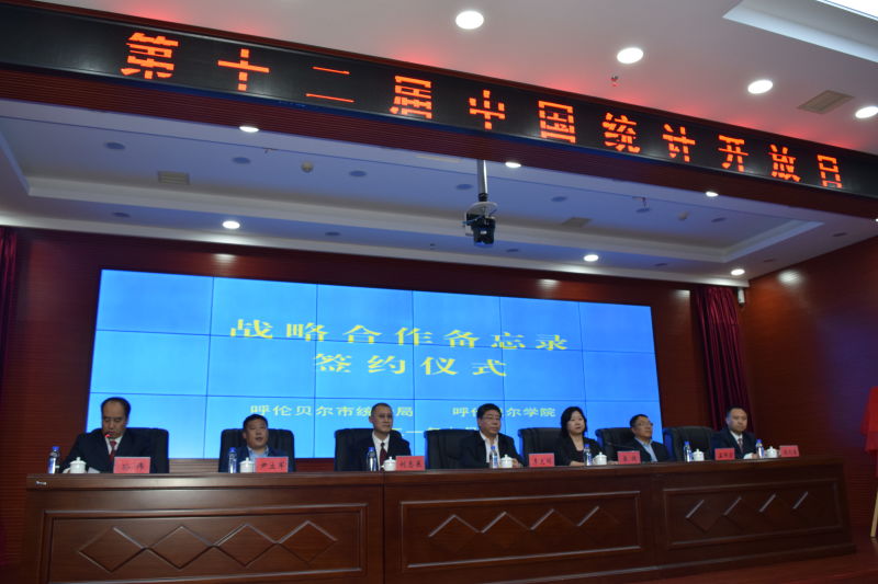 9月18日下午,永利yl23411集团官网与呼伦贝尔市统计局合作备忘录签订仪式暨第十二届“中国统计开放日”活动在河西新区政务综合楼F东区1层会议室举行。永利yl23411集团官网党委副书记、校长李文阁,党委委员、副校长孟祥宏,呼伦贝尔市统计局局长崔健,副局长刘志东,副局长王元奎及永利yl23411集团官网教务处处长尹立军,数学与统计学院领导班子及教师代表出席此次会议。会议由呼伦贝尔市统计局四级调研员孙伟主持。