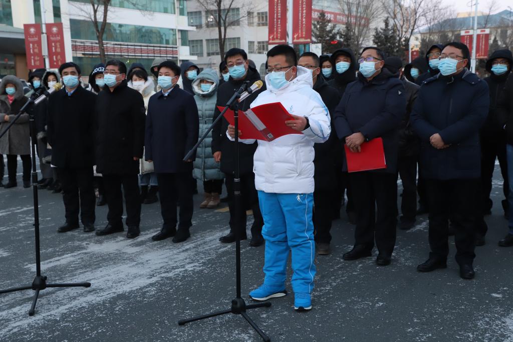 校党委书记王广利作动员讲话,他代表学校向队员们表示感谢和敬意。他强调,队员的大爱彰显了高校师生的家国情怀与担当,希望大家展现呼院的担当、作为和能力,服从命令,听从指挥。他嘱咐大家:要严格做好自身防护,保重身体健康。全校上下也将一直关注冲在前线的志愿者,为大家的工作健康安全提供可靠保障,确保大家平平安安!