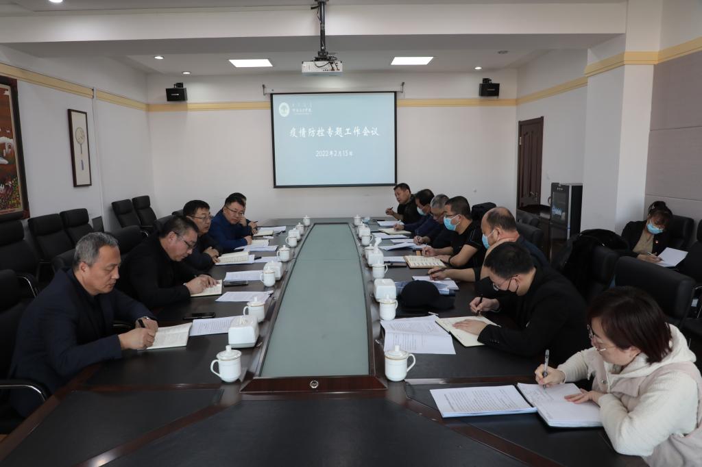 2月15日上午,校党委书记、新冠肺炎疫情防控工作领导小组组长王广利主持召开学校春季开学疫情防控工作专题会议,落实自治区党委政府、教育厅和属地疫情防控最新要求,全面梳理评估开学保障工作,统筹部署疫情防控和春季开学各项准备工作,确保新学期各项工作平稳有序、落细落实。学校新冠肺炎疫情防控工作领导小组副组长、副校长孟祥宏及各专项工作组负责人参加会议。