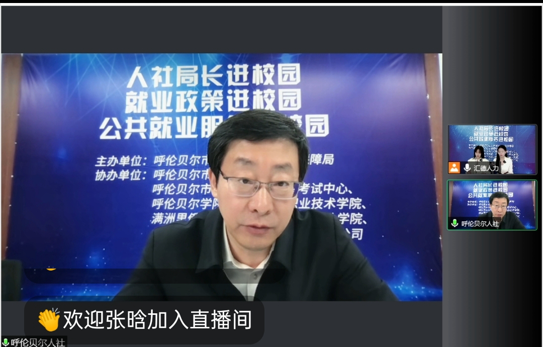 为有效落实“就业促进周”系列活动安排,在学生不能返校的疫情防控特殊时期,让2022届毕业生更好地了解、掌握就业创业政策及相关知识,5月8日上午,永利yl23411集团官网与呼伦贝尔市人力资源和社会保障局、呼伦贝尔市就业服务中心、呼伦贝尔市人才服务和人事考试中心联合举办“就业政策进校园”宣讲活动。全校毕业生2300余人参加了此次政策宣讲会。