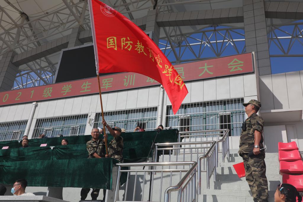 最后,李健处长为呼伦贝尔学院国防教育实践团授旗。