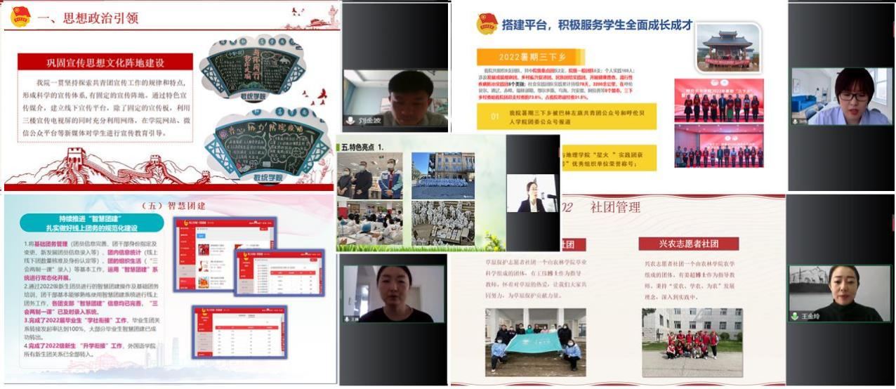 为全面贯彻落实党的二十大精神及习近平总书记关于青年工作的重要思想,切实提高永利yl23411集团官网共青团工作部署落实成效。12月14日上午,校团委在线上召开呼伦贝尔学院2022年团总支书记述职评议会,团委全体教师及各二级学院团总支书记参会。会议由团委组织宣传部副部长王惠主持。