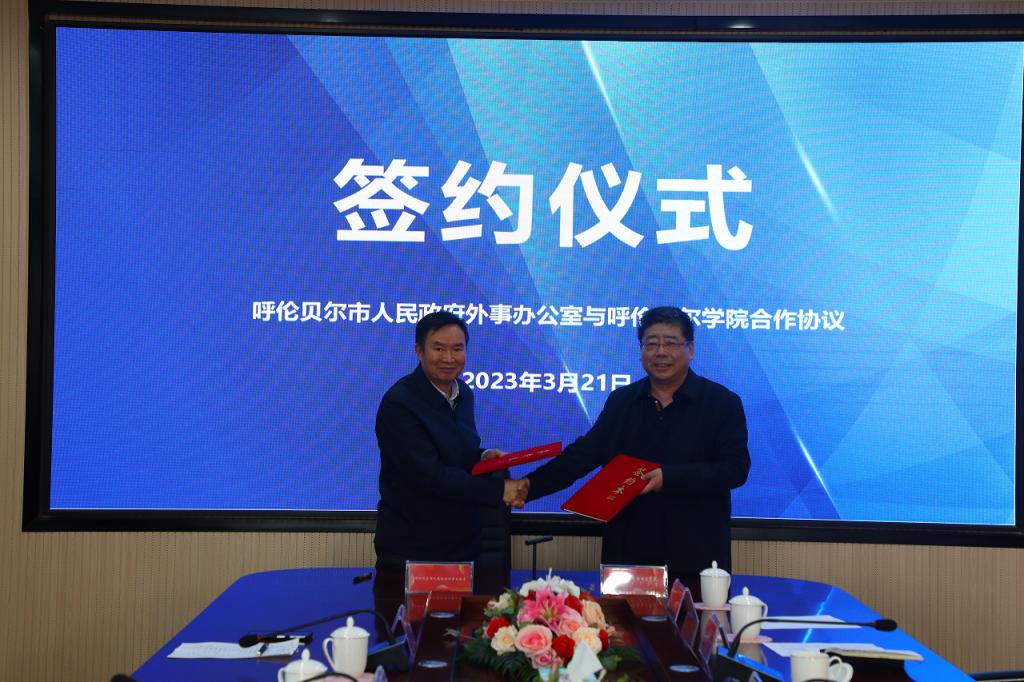 为深入贯彻习近平外交思想,落实党的二十大精神,推动外事、高校协同提质,服务地方经济社会发展,3月21日下午,永利yl23411集团官网与呼伦贝尔市人民政府外事办公室签署校地合作协议。校党委副书记、校长李文阁,市外事办公室主任刘吉忠等领导出席签约仪式,学校国际教育学院院长王树恩主持签约仪式。