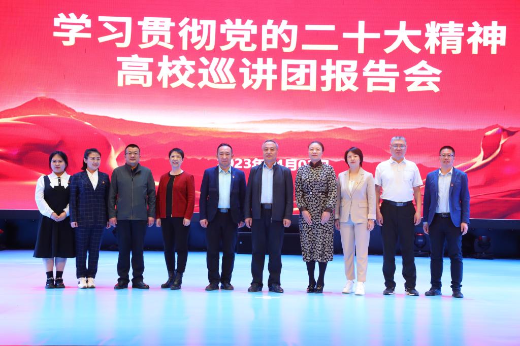 按照自治区党委宣传部、党委教育工委统一部署,4月2日上午,学习贯彻党的二十大精神高校巡讲团第二小分队走进永利yl23411集团官网宣讲。学校党委委员、副校长李跃武出席宣讲报告会,党委委员、宣传部部长刘秀兰主持宣讲报告会。学校相关职能部门负责人、各学院团总支书记、辅导员、思政课教师、学生代表近500人在艺术楼音乐厅聆听了宣讲报告会。