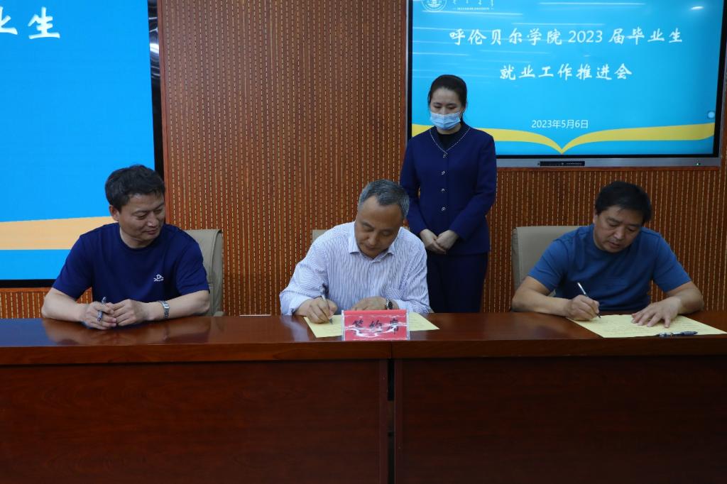 赵小花处长对近期招生就业重点工作进行安排。随后,李跃武副校长代表学校与各二级学院签订《呼伦贝尔学院2023年就业统计工作责任书》。